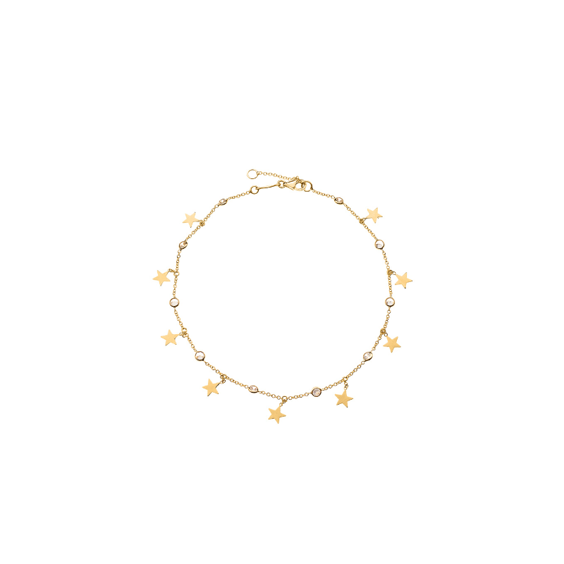 Brățară de picior din aur galben cu steluțe și pietricele B0421