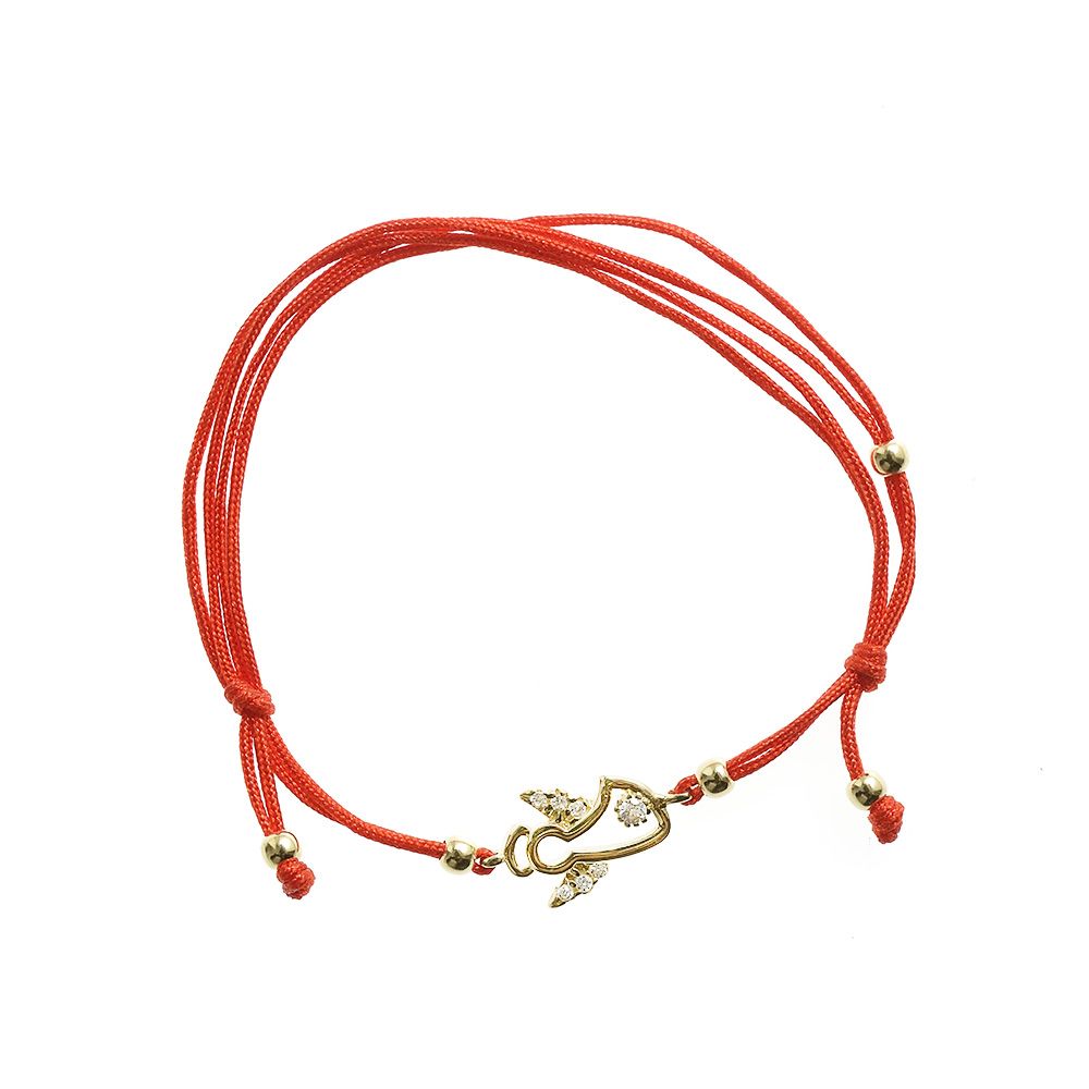 Personalizează-ți ținuta cu o brățară cu șnur roșu și un îngeraș atașat, din aur galben de 14k.