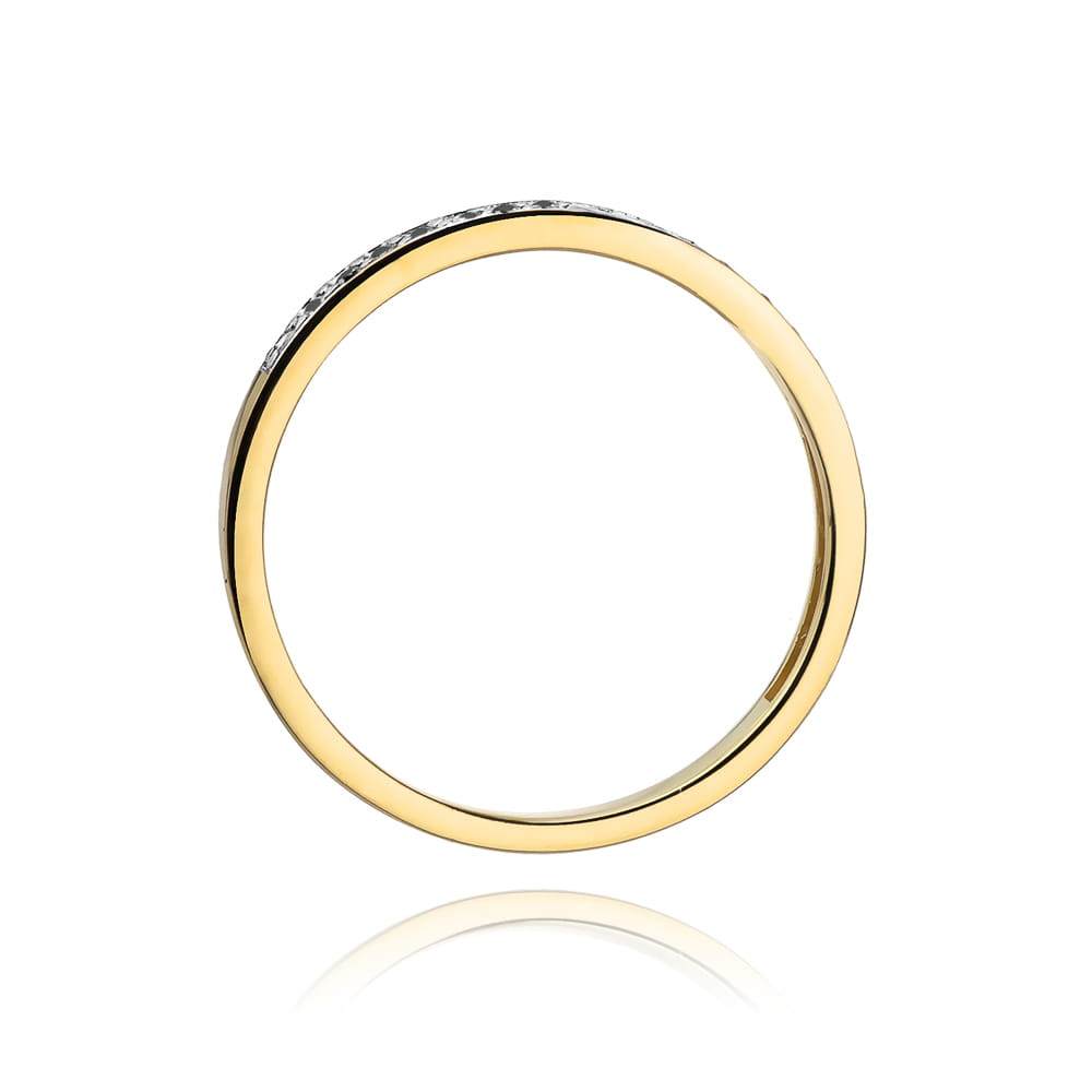 Inel Aur 14 K cu Diamante Negre 0.09 ct Contine 17 Diamante de 0.005 ct, Culoare H, Claritate Si Greutate: 1.10gr – 1.50 gr Latimea sinei: 1.90 mm Inelul vine insotit de Certificat de Calitate si Conformitate si cutie profesionala cadou.