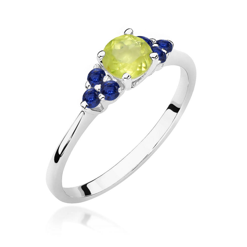 Descoperă eleganța atemporală a inelului W451, o bijuterie rafinată din aur galben de 14K, perfectă pentru a adăuga o notă de sofisticare oricărei ținute. Cu un peridot vibrant de 0.60ct ca piatră centrală și accente delicate de safir, acest inel este un simbol al stilului și feminității. Designul său atent lucrat și strălucirea pietrelor prețioase îl fac o alegere ideală pentru orice ocazie specială sau pentru a-ți exprima individualitatea. Pietre adiționale A: Safir Piatră centrală: Peridot Forma pietrei centrale: Rotundă Greutate pietre adiționale A: 0.05ct Lățime bandă la coroană: 1.2mm Înălțime coroană: 5.0mm Culoare metal: Aur Galben Dimensiuni piatră adițională A: 2.0mm Număr pietre adiționale A: 6 Greutate totală pietre adiționale: 0.30ct Greutate totală: 1.7 – 2.1g Greutate piatră centrală: 0.60ct Dimensiuni piatră centrală: 5.0mm Carate/Puritate Aur: 585 Realizat cu măiestrie și atenție la detalii, acest inel din aur de 14K evidențiază frumusețea naturală a peridotului și strălucirea subtilă a safirelor. Fiecare piatră este selecționată cu grijă pentru a asigura o simetrie perfectă și o strălucire excepțională. Admirați această bijuterie unică și adăugați un strop de lux colecției dvs.