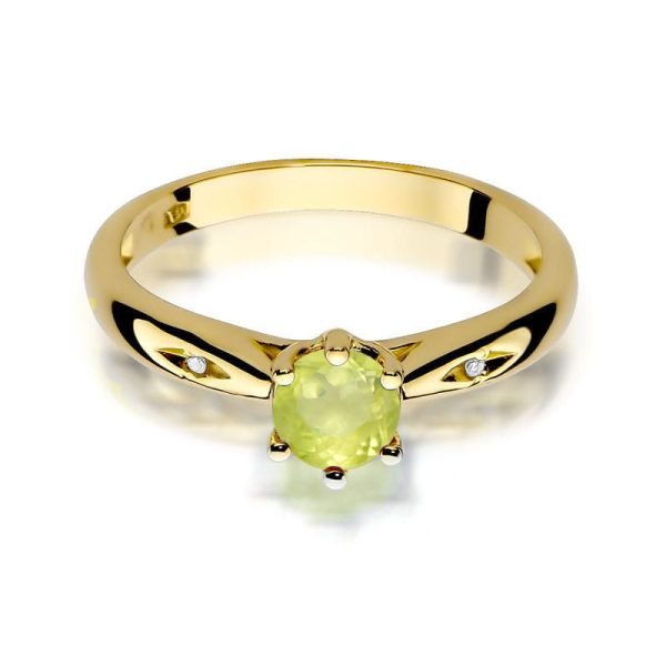Inel Aur 14K cu Peridot 0.60 ct si Diamante laterale 0.05 ct